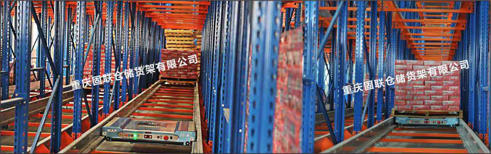 穿梭式貨架系統是由貨架、臺車以及叉車組成的高密度儲存系統,這種高效率的儲存方式是為了提高倉庫空間的利用率,為客戶帶來的全新存儲選擇! 工作原理存貨: 由叉車將貨物放在貨架巷道導軌的最前端, 通過無線電遙控操作的WAP-1穿梭車,可以承載托盤貨物在導軌上運行; 取貨:WAP-1穿梭車將貨架深處的托盤移動至貨架最前端,用叉車將托盤貨物從貨架上取下;