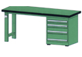 其優(yōu)點(diǎn)是:1、組裝簡便,強(qiáng)度高,可使工作臺(tái)承受額定重量。 2、多種桌面材質(zhì)供選擇,可適用于不同的工作環(huán)境以滿足客戶的要求。 3、重型工作臺(tái)桌腳上預(yù)留電源孔,方便用戶安裝電源插座。 4、加裝工具柜后,更能合理的使用空間,存放工具及零配件。 5、選擇合適的桌面可直接在工作臺(tái)上加裝臺(tái)鉗,適合鉗工工作。 6、工作臺(tái)可以加裝掛板、電器板、燈頂板、棚板等桌上部件,以滿足各種工作的要求。 7、重型工作臺(tái)額定承重1000kg,中、輕型工作臺(tái)額定承重200-800kg。